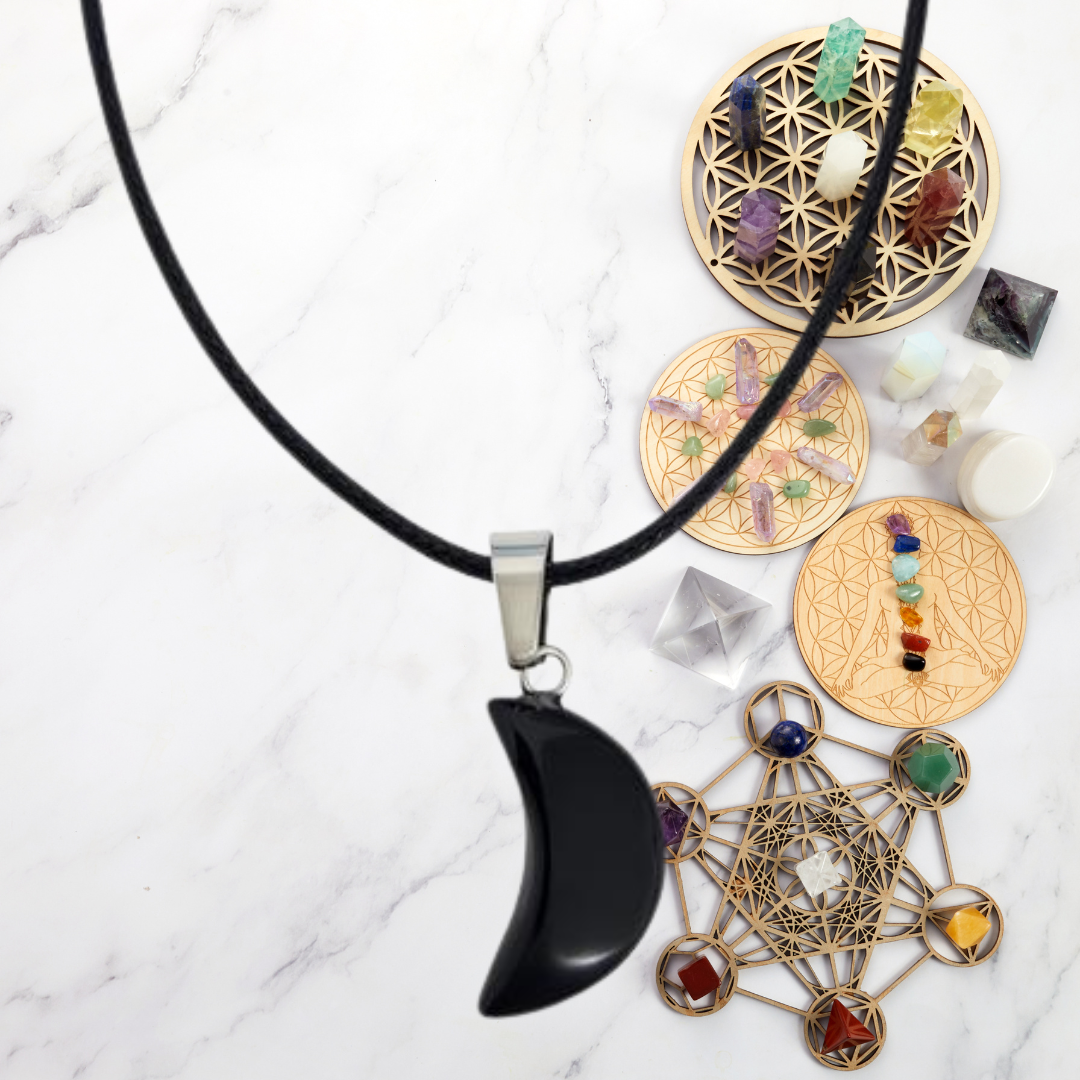 Black Obsidian Crescent Moon Protection Necklace