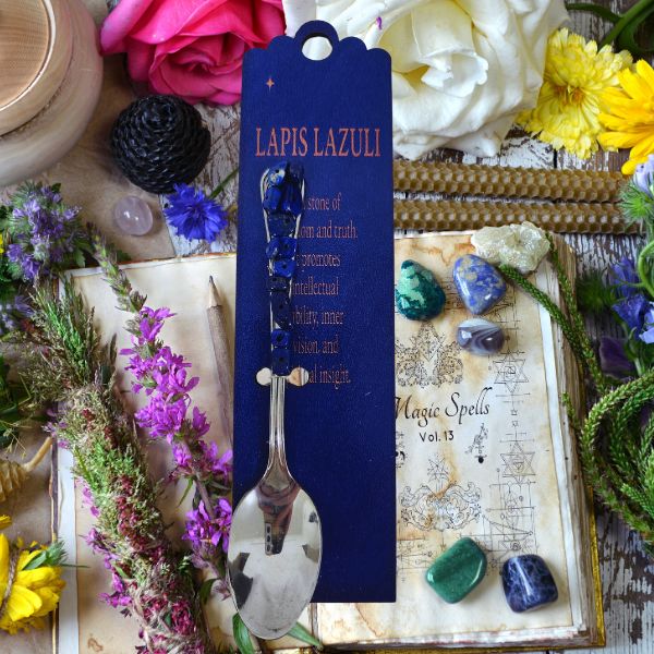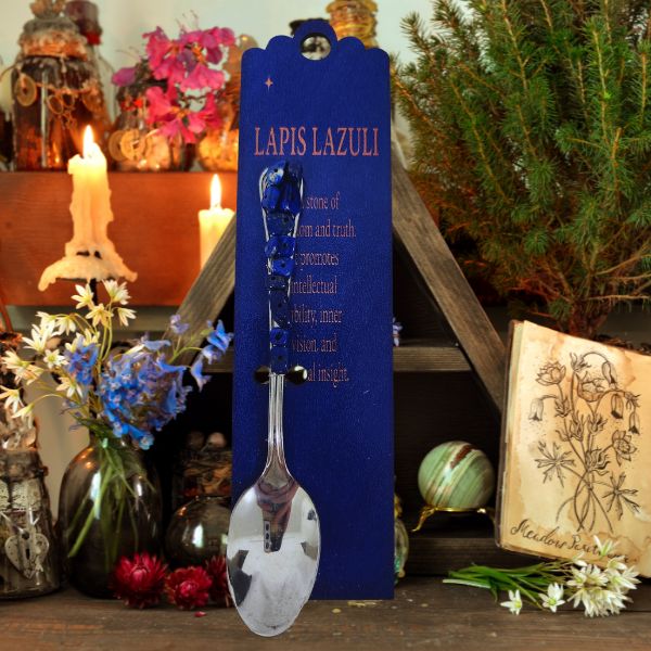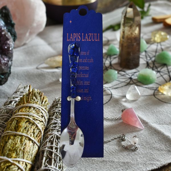 Infuse your rituals with ancient energy and divine truth using our Celestial Altar Spoon, a beautifully crafted silver spoon with a handle adorned in genuine lapis lazuli chips. This elegant and functional tool is perfect for scooping herbs, mixing spell ingredients, or stirring intention into your sacred blends.