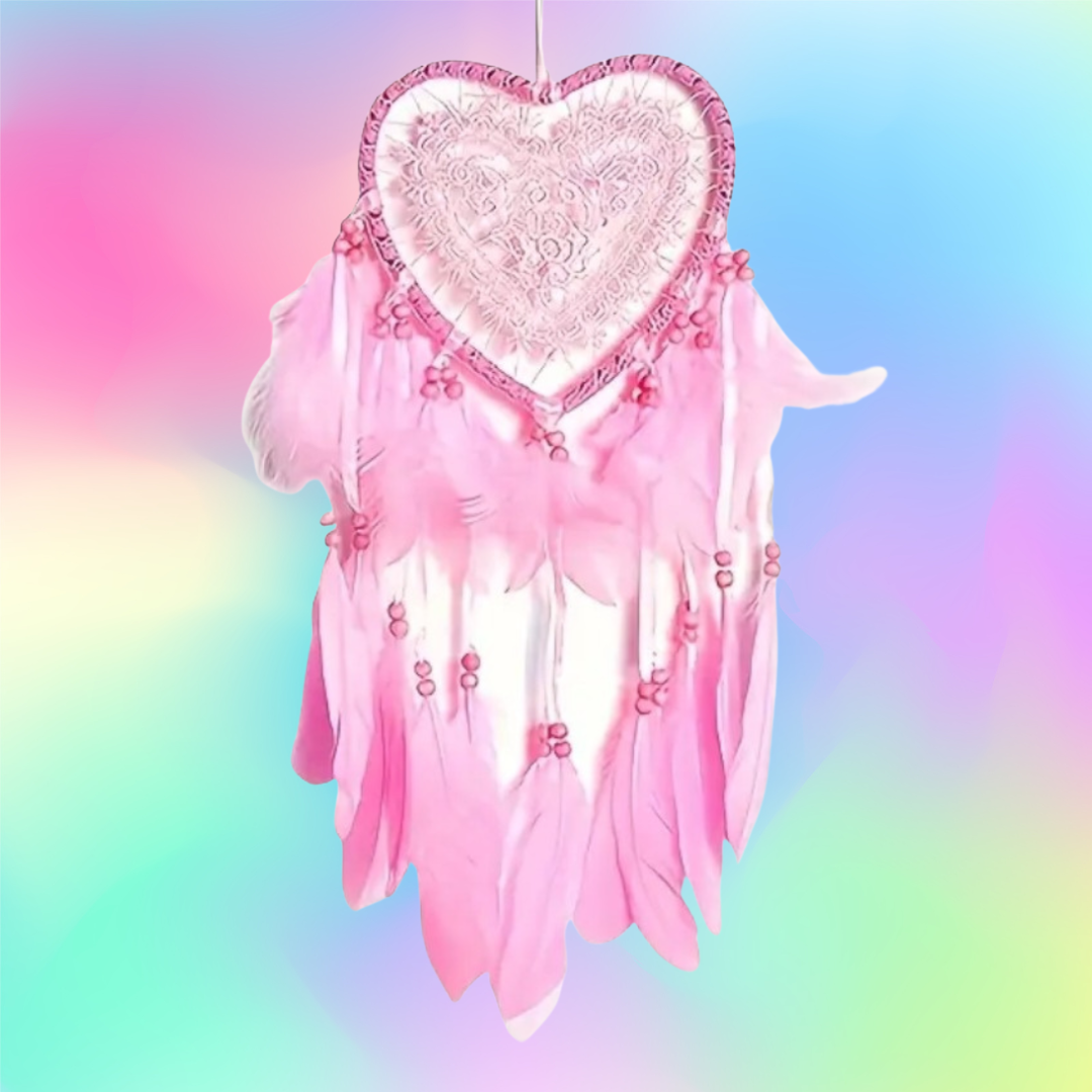 Add a touch of charm and serenity to your space with our Heart-Shaped Pink Lace Dreamcatcher. Handcrafted with care, this delicate piece features a beautifully woven pink lace center framed by a heart-shaped design, symbolizing love, protection, and harmony.