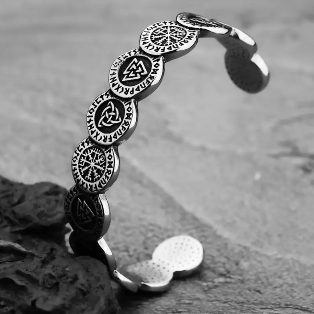 Nordic Rune & Valknut Symbol Alloy Bracelet