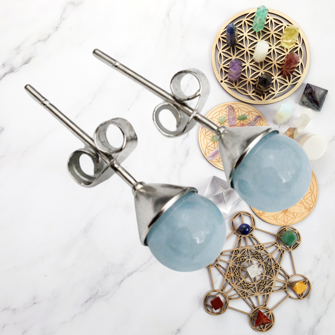 Aquamarine has long been associated with serenity and clear communication. Connected to the throat chakra, it is believed to encourage honest expression, ease stress, and calm an overactive mind. Often known as the Stone of Courage, Aquamarine supports emotional healing, inner peace, and flowing gracefully through life’s changes. Paired with a polished silver tone setting, these studs offer both timeless style and meaningful symbolism.