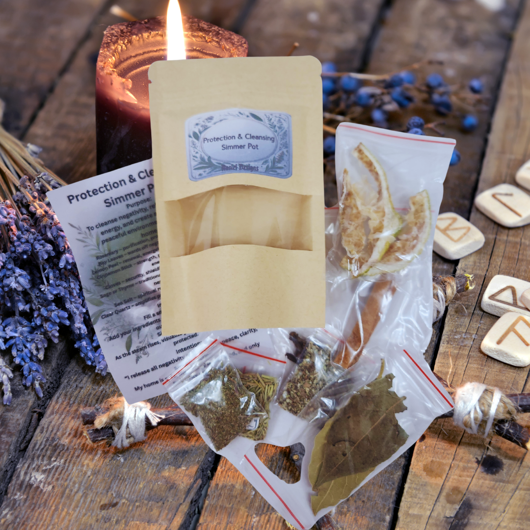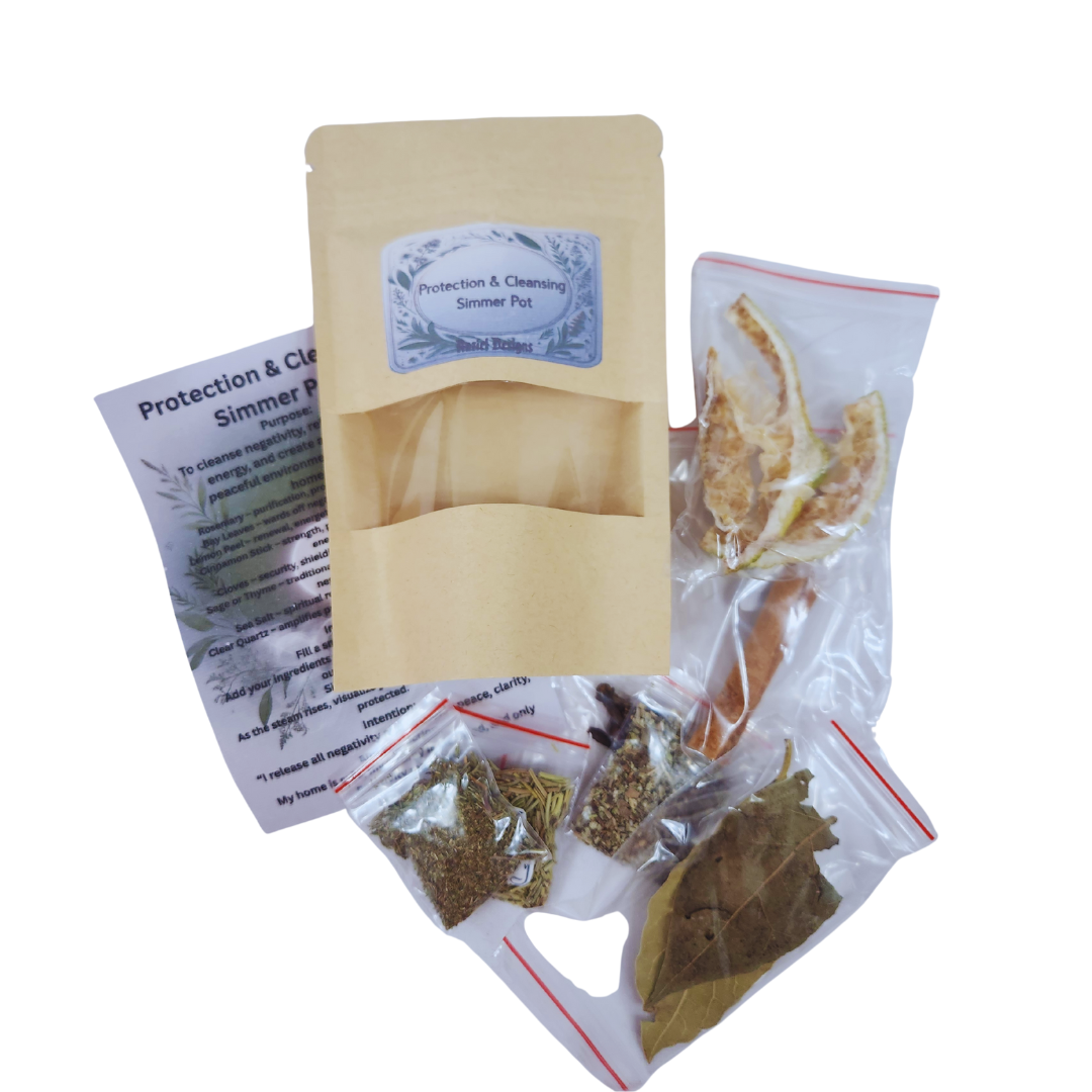 Refresh your home’s energy and create a shield of spiritual protection with our Protection & Cleansing Simmer Pot. Crafted with intentionally selected botanicals and correspondences, this blend is designed to help clear away stagnant or negative energy while restoring peace, clarity, and balance to your space.