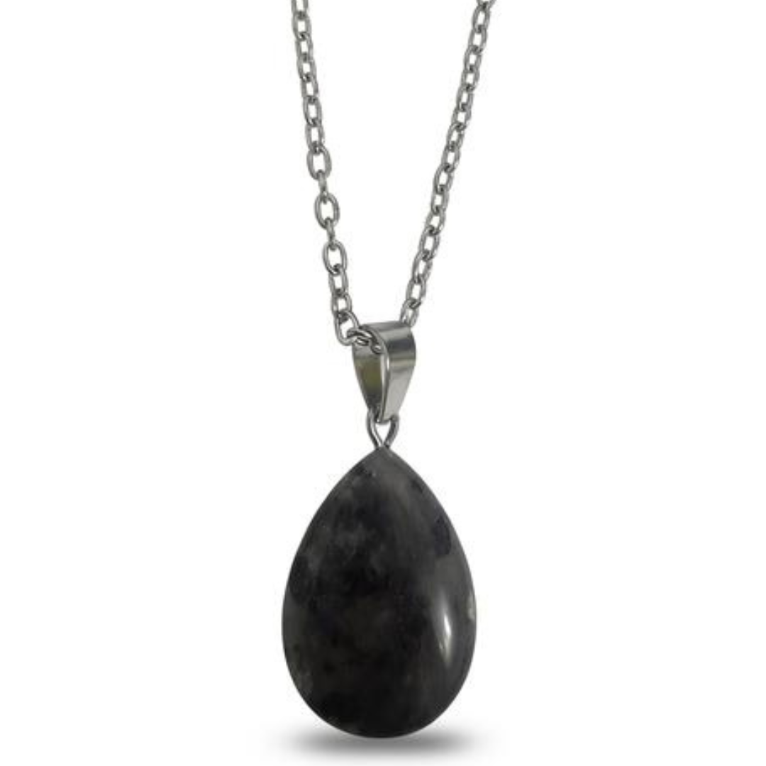 Shadow Veil Larvikite Teardrop Necklace